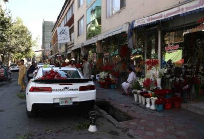 A man decorates a vehicle for a wedding party on a street in Kabul, capital of Afghanistan, Sept. 15, 2021. (Photo by Kabir/Xinhua)