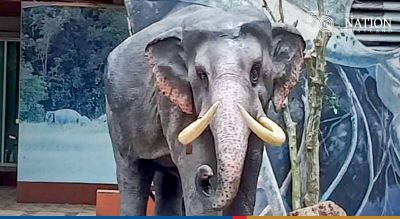 Plai Ning, an elephant statue, was returned to its post outside the Khao Yai National Park visitor centre in Nakhon Ratchasima after it had been toppled over by a real elephant.