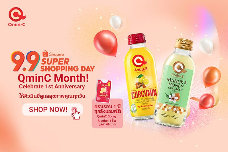 ‘เครื่องดื่มขมิ้นชันสกัดเข้มข้นคิวมินซี’ ฉลองความสำเร็จขวบปีแรก จัดโปรพิเศษ ‘QminC Month! Celebrate 1st Anniversary’ แทนคำขอบคุณทางช้อปปี้