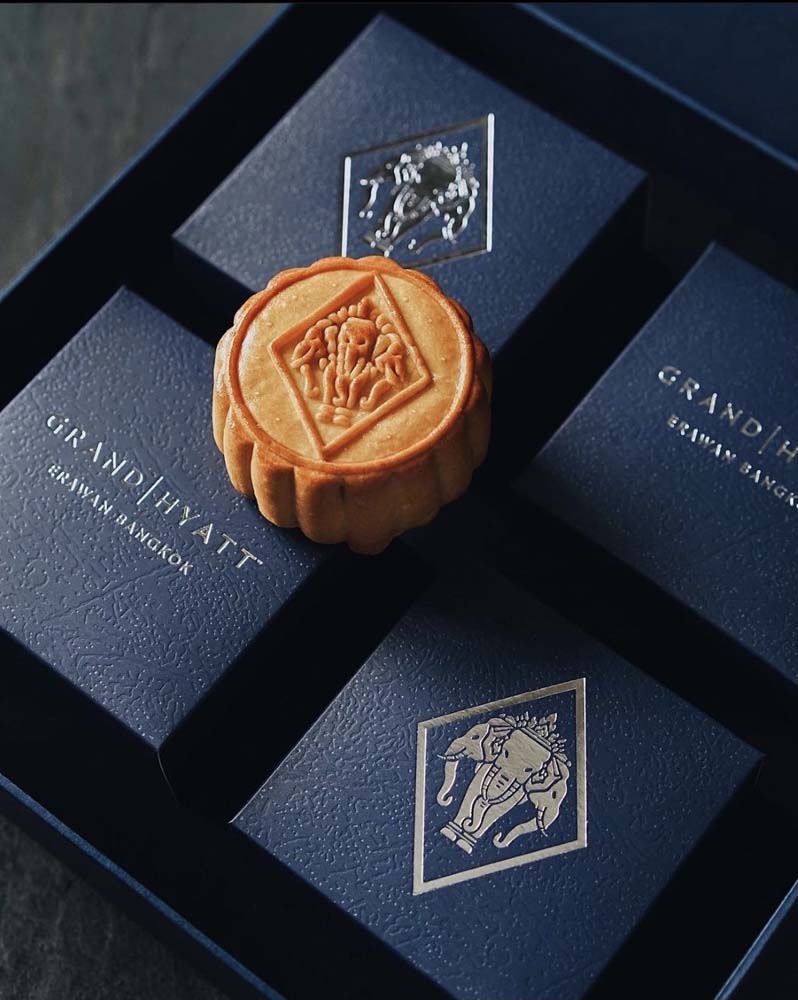 เหล่าโรงแรมชั้นนำต่างภูมิใจนำเสนอขนมไหว้พระจันทร์หลากรสชาติบรรจุในกล่องสวยหรู พร้อมรสชาติอันเป็นเอกลักษณ์ เริ่มที่ โรงแรม แกรนด์ไฮแอท เอราวัณ กรุงเทพฯ ขนมไหว้พระจันทร์สูตรพิเศษ ที่บรรจุมาในกล่องของขวัญที่ผสมผสานความทันสมัยแต่เรียบง่ายและสง่างาม มาพร้อมกับขนมไหว้พระจันทร์ 4 รสชาติสุดคลาสสิกไม่ว่าจะเป็นไส้ใบเตยมะพร้าว, ไส้ 8 เซียน,ไส้คลาสสิกอย่าง ทุเรียนไข่แดง, และไส้คัสตาร์ดที่หอมหวานลงตัว 4 ชิ้นราคา 888 บาท 8 ชิ้น ราคา 1,588 บาท