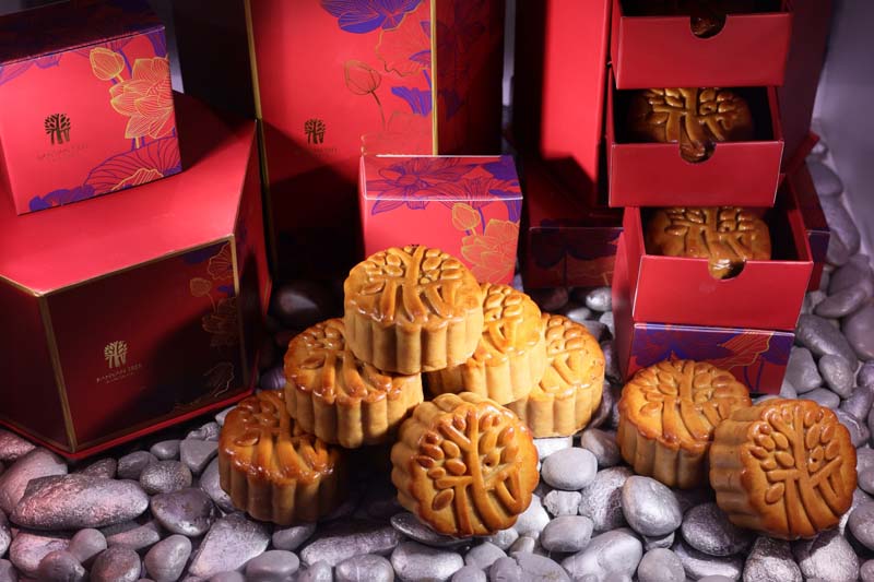 BANYAN TREE BANGKOK ขนมไหว้พระจันทร์แบบโฮมเมด ที่เลือกใช้แต่วัตถุดิบที่สด สะอาด อบใหม่ทุกวัน ที่พร้อมให้ได้เลือกลิ้มลองความอร่อยกับไส้ต่างๆ อาทิ ไส้ทุเรียน, เม็ดบัว, โหงวยิ้ง,พุทราผสมวอลนัท และคัสตาร์ด