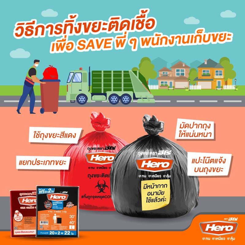 ท่ามกลางความเสี่ยงที่เลี่ยงไม่ได้ในช่วงที่สถานการณ์โควิด-19 นี้ “ฮีโร่” (HERO) ผู้นำนวัตกรรมด้านการผลิตและจัดจำหน่ายบรรจุภัณฑ์พลาสติกชั้นนำระดับโลก ให้ความสำคัญกับอีก 1 อาชีพที่ต้องอุทิศตนทำงานเพื่อพวกเรา คือพนักงานเก็บขยะ ดังนั้น วันนี้ เราจึงมาแนะ4 วิธีการง่ายๆ ในการทิ้งขยะติดเชื้อ เพื่อ #Save พี่ๆ พนักงานเก็บขยะโดยรวบรวมข้อมูลจาก กรมควบคุมโรค กรมควบคุมมลพิษ กรมอนามัยดังนี้