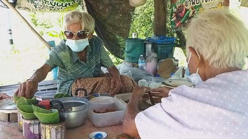 ผู้สื่อข่าวไปพบเพิงไม้เล็กๆริมถนนหมายเลข 1195 หมู่ 6 บ้านบางคลอง ต.ปากแคว อ.เมือง จ.สุโขทัย มีคุณยาย 2 คน ชื่อ น.ส.นกเล็ก อายุ 88 ปี กับ น.ส.สุดใจ เชยสุข อายุ 78 ปี เป็นพี่น้องกัน สถานะโสดทั้งคู่ มานั่งขายเมี่ยงโบราณทุกวัน ตั้งแต่ 8 โมงเช้า ถึง 4 โมงเย็น เพื่อหาเลี้ยงชีพและเก็บออมเงินไปให้หมอรักษาโรคกระดูกทับเส้น ที่ยังรู้สึกเสียวสะโพก จนเดินแทบไม่ได้ แต่ก็ต้องทนสู้ชีวิต ทำเมี่ยงขายไปเรื่อยๆ จนกว่าจะทำไม่ไหว