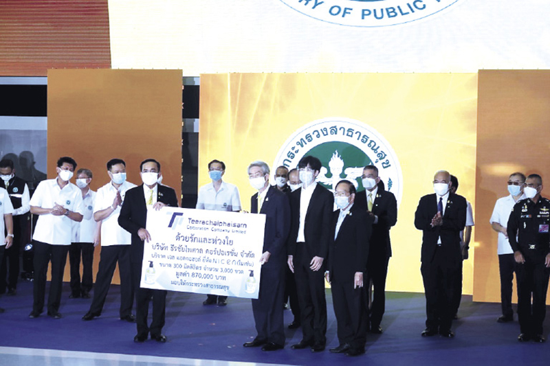 คุณกิตติพงษ์ : สมาคมฯ และสมาชิกของสมาคมฯ ทุกคนเห็นความสำคัญในการช่วยเหลือสังคมให้ผ่านพ้นวิกฤตนี้ จึงให้ความช่วยเหลือด้านต่างๆ กับประชาชน หน่วยงานรัฐ วัด โรงพยาบาล เป็นประจำ กล่าวได้ว่าเมื่อสมาคมฯ ทราบว่าที่ใดขาดแคลนสิ่งของ ขาดแคลนอาหาร เครื่องใช้ในชีวิตประจำวัน สมาคมฯ ก็ให้ความช่วยเหลือทันที เช่น เมื่อช่วงก่อตั้งโรงพยาบาลสนามบุษราคัม เมืองทองธานี สมาคมฯ ไปบริจาคเจลแอลกอฮอล์สำหรับฆ่าเชื้อ และทำความสะอาดมือ ซึ่งในวันนั้นท่านนายกรัฐมนตรีเป็นผู้รับมอบ นอกจากนั้นสมาคมฯก็ไปมอบเจลแอลกอฮอล์ให้เรือนจำหลายแห่ง เพราะทราบว่ามีปัญหาการติดเชื้อโควิด-19กันมาก และยังไปมอบให้กระทรวงยุติธรรม โดยรัฐมนตรีว่าการกระทรวง นายสมศักดิ์ เทพสุทิน เป็นผู้รับมอบ นอกจากนี้สมาคมฯ มอบเครื่องมือและอุปกรณ์การแพทย์ให้กระทรวงสาธารณสุขด้วยโดยรองนายกรัฐมนตรี และรัฐมนตรีว่าการกระทรวงฯนายอนุทิน ชาญวีรกูล เป็นผู้รับมอบ นอกจากนี้สมาคมฯ มอบเครื่องมือแพทย์ เช่น เครื่องช่วยหายใจให้โรงพยาบาลสมเด็จพระยุพราช หลายแห่งโดยมอบผ่านท่านองคมนตรี นายแพทย์เกษมวัฒนชัย แล้วเมื่อไม่นานมานี้ สมาคมฯ ก็ได้หารือกับผู้บัญชาการตำรวจแห่งชาติ พลตำรวจเอกสุวัฒน์แจ้งยอดสุข เพื่อช่วยโครงการตรวจหาเชื้อโควิด-19เชิงรุกให้กับตำรวจ โดยมอบ Rapid Testจำนวน 15,000 ชุดให้ และจัดหารถเอกซเรย์เคลื่อนที่ให้อีกด้วย การตรวจเชิงรุกครั้งนี้ไม่ได้เฉพาะเจาะจงแค่ตำรวจเท่านั้น แต่ยังครอบคลุมไปถึงคนในครอบครัวของตำรวจด้วย และยังมอบยาฟ้าทะลายโจร และยาแก้ไข ให้อีกด้วย โดยมูลค่าของยาที่มอบให้ตกประมาณ 3 ล้านกว่าบาท สิ่งที่สมาคมฯ ทำทั้งหมดนี้ ก็ด้วยความคิดที่ว่าต้องการมีส่วนช่วยเหลือสังคมให้รอดพ้นจากวิกฤติโควิด-19