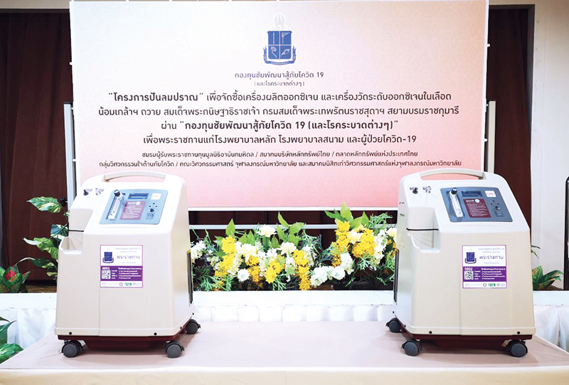 ส่วนที่ 3 สนับสนุนเงินจำนวน 10 ล้านบาท และจากตลาดหลักทรัพย์แห่งประเทศไทย จำนวน 5 ล้านบาท โดยร่วมมือกับอีก 4 องค์กร เพื่อจัดหาเครื่องผลิตออกซิเจน (oxygen concentrator) ขนาด 5 ลิตร และ 10 ลิตร จำนวน 790 เครื่อง เพื่อนำไปใช้กับผู้ป่วยติดเชื้อ COVID-19 ที่แยกกักตัวที่บ้านหรือที่แยกกักตัวในชุมชน ที่เริ่มมีปัญหาระบบทางเดินหายใจไม่ให้มีอาการทรุดหนักลง หรือมีเวลาที่จะนำไปรักษาตัวที่โรงพยาบาลต่อไป โดยส่วนนี้สมาคมฯได้ดำเนินการร่วมกับมูลนิธิชัยพัฒนา