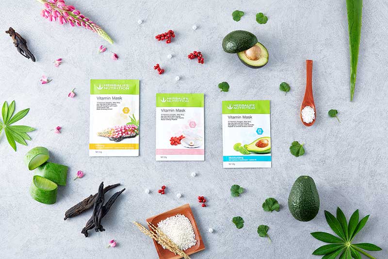 เฮอร์บาไลฟ์ นิวทริชั่น วิตามิน มาส์ก ที่มาในรูปแบบแผ่นมาส์กชีท ประกอบด้วย 3 สูตร ได้แก่ สูตรเพิ่มความชุ่มชื้น (Moisturizing), สูตรผิวขาวกระจ่างใส (Brightening) และ สูตรยกกระชับผิว (Firming) ที่สามารถตอบโจทย์ทุกความต้องการที่แตกต่างกันได้อย่างอ่อนโยน อุดมด้วยส่วนผสมนานาชนิด อาทิ วิตามิน 12 ชนิด ว่านหางจระเข้ เกลือทะเลเกาะเจจู สารสกัดจากข้าวเกาะเจจู โปรตีนสกัดจากอโวคาโด Lupin seeds, Pearles Rosée, Omija Peptideและสารสกัดจาก Black Ginseng ที่จะช่วยในการฟื้นบำรุงผิวอย่างอ่อนโยน เติมความชุ่มชื้น ลดเลือนริ้วรอยและจุดหมองคล้ำ ตลอดจนปรับผิวหน้าให้แลดูกระจ่างใสอย่างเป็นธรรมชาติ