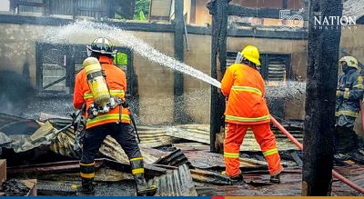 Firefighters took more than one hour to put out the fire, which completely destroyed the building in Muang district.