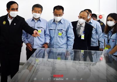 พล.อ.ประยุทธ์ จันทร์โอชา นายกฯและ รมว.กลาโหม พร้อมด้วยนายสุชาติ ชมกลิ่น รมว.แรงงาน อิทธิพล คุณปลื้ม รมว.วัฒนธรรม ตรวจเยี่ยมโรงงานตามโครงการ Factory Sandbox จังหวัดชลบุรี ณ บริษัท มิตซูบิชิ มอเตอร์ จำกัด (แหลมฉบัง) ตำบลทุ่งสุขลา อำเภอศรีราชา จังหวัดชลบุรี