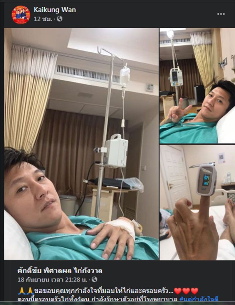 20 กันยายน 2564 ผู้สื่อข่าวรายงานว่าจากกรณีที่ นายศักดิ์ชัย พิศาลผล นายกเทศมนตรีเทศบาลเมืองราชบุรี หรือ “นายกไก่” นายกขวัญใจชาวบ้าน ได้ออกมาเผยข้อมูลที่ตนเองกำลังนอนรักษาตัวด้วยการติดเชื้อโควิด-19 พร้อมภรรยา และลูกชายวัย 5 ขวบ และ 2 ขวบ ทั้ง 4 คน รักษาตัวสอยู่ภายในโรงพยาบาลปิยะเวท กรุงเทพมหานคร โดยโพสต์ภาพและข้อความผ่านเฟซบุ๊กส่วนตัว ชื่อ “Kaikung Wan” เมื่อเวลา 20.34 น.ของวันที่ 18 ก.ย.64 สร้างความตกใจให้กับผู้ใกล้ชิดและชาวบ้านในเขตเทศบาลเมืองราชบุรีเป็นอย่างมาก โดยนายศักดิ์ชัย ได้เผยอาการขณะเข้ารักษาตัว แพทย์ได้ทำการตรวจร่างกายและตรวจปอด พบว่าปอดเป็นฝ้าขาว และมีอาการเชื้อลงปอด 30%