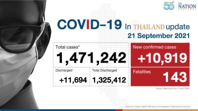 Ministry of Public Health reported on Tuesday (September 21) morning that in the past 24 hours there are 10,919 new patients who tested positive for Covid-19, 422 of whom have been found in prisons.