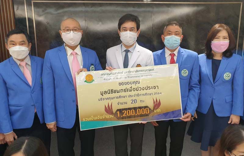 มูลนิธิทุนแพทย์เพื่อปวงประชา จัดพิธีมอบทุนการศึกษาให้แก่นักศึกษาแพทย์ที่เรียนดี แต่ขาดแคลนทุนทรัพย์ ให้กับนักศึกษาคณะแพทยศาสตร์ มหาวิทยาลัยธรรมศาสตร์ ประจำปีการศึกษา 2564 จำนวน 20 ทุน ทุนละ 60,000 บาท รวมทั้งสิ้น 1,200,000 บาท ประเภททุนต่อเนื่อง และได้จัดพิธีมอบทุนการศึกษา โดยมี รศ.นพ.ดิลก ภิยโยทัย คณบดีคณะแพทยศาสตร์ มหาวิทยาลัยธรรมศาสตร์ พร้อมด้วย ดร.สุรชัยสุทธิวรชัย ประธานมูลนิธิทุนแพทย์เพื่อปวงประชา, อานุภาพ ธีรณิศรานนท์,ศศกร แผ่ดิลกกุล, ยุทธเมธากรณ์อภิจิระโภคี และคณะกรรมการมูลนิธิฯผู้มีจิตศรัทธาร่วมในพิธี ณ ห้องประชุมอารี วัลยะเสวี ชั้น 3 อาคารคุณากร คณะแพทยศาสตร์ มหาวิทยาลัยธรรมศาสตร์ ศูนย์รังสิต