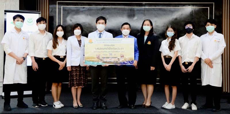 ร่วมถ่ายภาพกับคณะนักศึกษาคณะแพทยศาสตร์ มธ. ที่ได้รับทุนการศึกษาประจำปีการศึกษา 2564