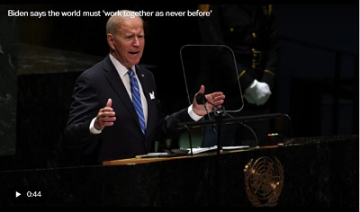 In his first speech to the United Nations as president, Biden affirmed U.S. support for it and other international partnerships. He pledged additional support for poorer countries often disproportionately affected by climate change and said the challenges of the future require leaving old conflicts in the past.