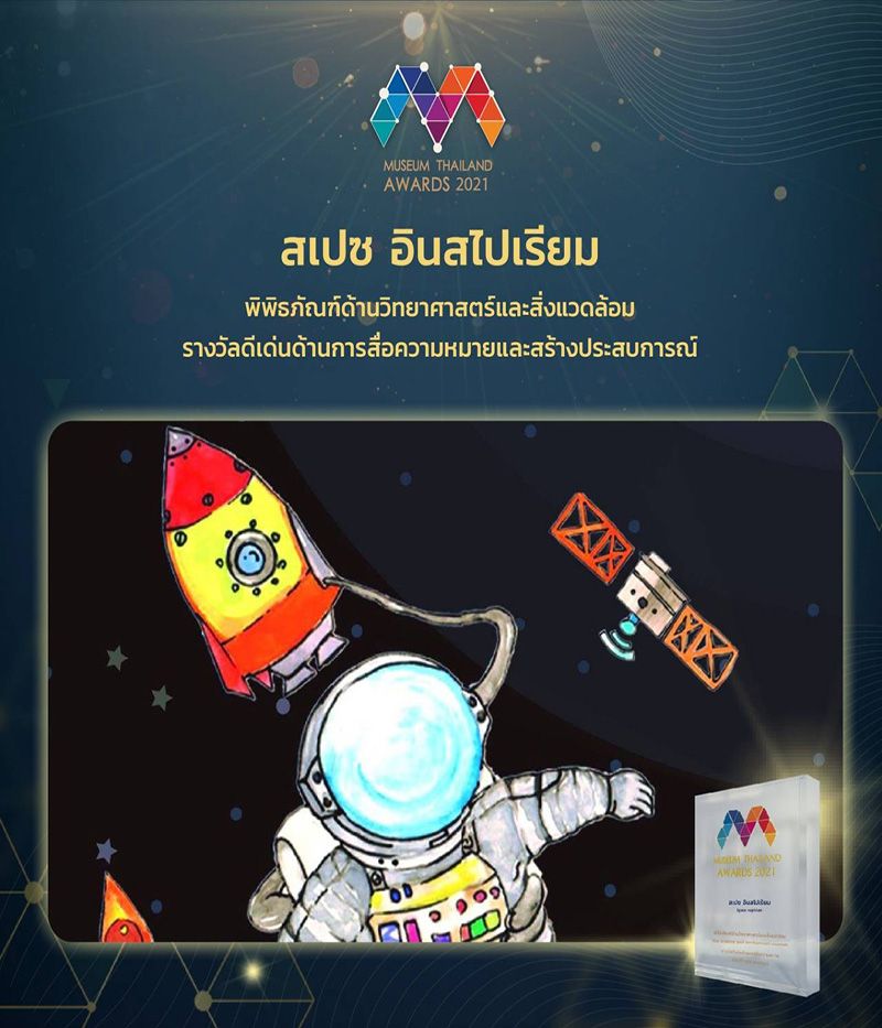 20 กันยายน 2564 Space Inspirium ของสำนักงานพัฒนาเทคโนโลยีอวกาศและภูมิสารสนเทศ (องค์การมหาชน) หรือ GISTDA คว้ารางวัล Museum Thailand Awards 2021 ประเภทพิพิธภัณฑ์ด้านวิทยาศาสตร์และสิ่งแวดล้อม รางวัลดีเด่นด้านการสื่อความหมายและสร้างประสบการณ์ โดยมีพิพิธภัณฑ์กว่า 50 แห่งทั่วประเทศ โดยมีนายอิทธิพล คุณปลื้ม รัฐมนตรีว่าการกระทรวงวัฒนธรรม เป็นประธานในครั้งนี้