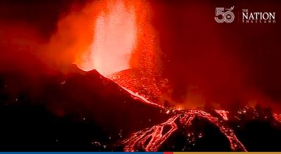 Videos and photos on social media showed streams of bright orange lava from the Cumbre Vieja volcano flowing through streets, engulfing houses and roads, while fountains of lava and ash exploded overhead.