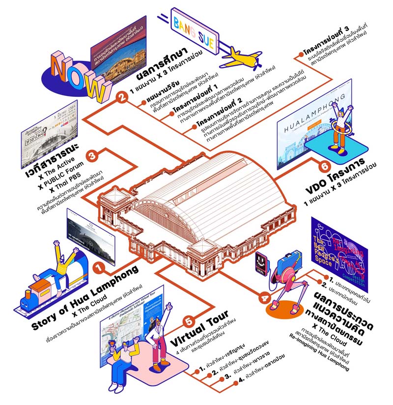 ประวัติศาสตร์หน้าใหม่ของหัวลำโพงจะเป็นเช่นไร? การรถไฟแห่งประเทศไทยและสำนักงานคณะกรรมการส่งเสริมวิทยาศาสตร์ วิจัยและนวัตกรรมสนับสนุนให้จุฬาลงกรณ์มหาวิทยาลัย มหาวิทยาลัยเทคโนโลยีพระจอมเกล้าธนบุรี มหาวิทยาลัยธรรมศาสตร์ มหาวิทยาลัยนเรศวร และสถาบันอาศรมศิลป์ ดำเนินการวิจัยเพื่อหาทิศทางอนาคตของหัวลำโพงในศตวรรษใหม่