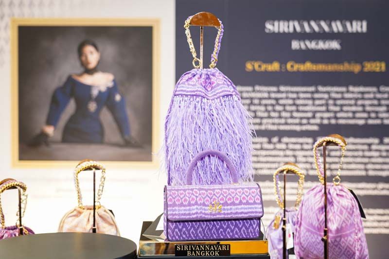 คอลเลคชั่นพิเศษกระเป๋าผ้าไหมไทยทรงออกแบบใน S’Craft Craftsmanship 2021 นี้ รังสรรค์มาจากผ้าไหมไทยส่วนพระองค์ที่เป็นผ้าไหมพื้นเมืองจากกลุ่มผู้ทอผ้าต่างๆ ทั่วประเทศ เพื่อสนับสนุนและสร้างรายได้ให้กลุ่มชุมชนผู้ทอผ้า นำเสนอในหลากหลายรูปแบบดีไซน์กระเป๋า อาทิ Bag with Tassle, Pyramid Bag และ Signature Bag พร้อมทั้งในคอลเลคชั่นนี้ สมเด็จพระเจ้าลูกเธอ เจ้าฟ้าสิริวัณณวรี นารีรัตนราชกัญญา ทรงออกแบบพิเศษเป็นกระเป๋าแฟชั่นรูปแบบผสมที่สามารถใช้ในชีวิตประจำวัน โดยรูปทรงของกระเป๋าถูกพัฒนาจากกระเป๋าถือทรงตะกร้าโบราณกับกระเป๋าถัง(BUCKET BAG) เพิ่มความโดดเด่นจากงานฝีมือชั้นเยี่ยมจาก SIRIVANNAVARI EMBROIDERY ATELIER AND ACADEMY ด้วยงานปักแบบฝรั่งเศส ตราสัญลักษณ์นกยูงของแบรนด์และตัวอักษร “S” สัญลักษณ์ของแบรนด์อย่างประณีตถือว่าเป็นการเชิดชูภูมิปัญญาท้องถิ่นในการทอผ้าไหมพื้นเมืองของไทยที่ผสมผสานกับศิลปะงานปักแบบฝรั่งเศสได้อย่างลงตัว