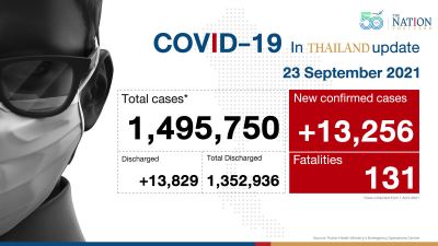 Thailand recorded 13,256 Covid-19 cases and 131 deaths on Thursday.
