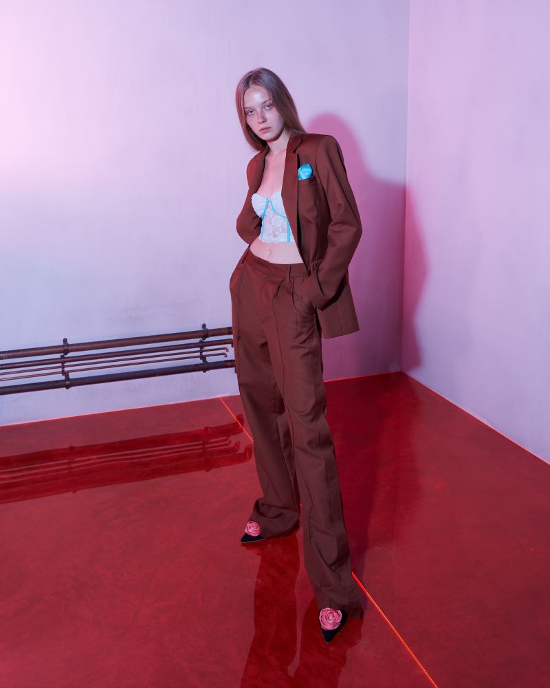ซึ่งนอกจากเสียงร้องและลีลาท่าเต้นแล้วใน MV แล้ว สิ่งที่แฟนๆ จับตามองก็คือการแต่งตัว ซึ่งตลอดทั้งรายการ สาวลิซ่าเลือกปรากฏตัวในโททัลลุคจากแบรนด์ไทยดีไซเนอร์อย่าง Landmeé (แลนด์มี่) จากคอลเลกชั่น Spring-Summer 2021 ที่มีชื่อคอลเลกชั่นน่ารักน่าหยิกว่า Will you Landmeé? ที่ตั้งใจถ่ายทอดความรู้สึกของความรักในรูปแบบเสื้อผ้าที่จะทำให้สาวๆ รู้สึกใจเต้นแรงราวกับว่ากำลังตกหลุมรัก บอกเล่าด้วยการดึงสัญลักษณ์ต่างๆ จากการ์ดและผ้าเช็ดหน้าวินเทจมาปรับให้เปรี้ยวซ่าตามแบบฉบับของแลนด์มี่ งานนี้เราเลยได้เห็นสาวลิซ่าสไตลิ่งลุคนี้ของตัวเองออกมาได้แบบสมาร์ทและสวยงาม ในชุดสูทสีน้ำตาลที่มีกิมมิคเล็กๆ แต่ง Pocket Square ชิ้นเล็กๆ สีฟ้าสอดไว้บนตัวสูท แมตช์เข้ากับเสื้อครอปลูกไม้สีฟ้าด้านใน เมื่อความลูกไม้ที่เป็นซิกเนอเจอร์ของแบรนด์ตัดสลับกับผ้าสูทที่ทั้งทรงและสีก็คือสวยดีงาม เรียกได้ว่ามองเพลินๆ ไม่เบื่อเลยแหละ