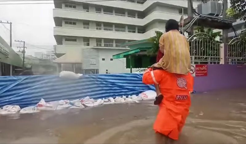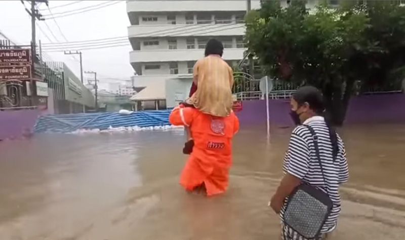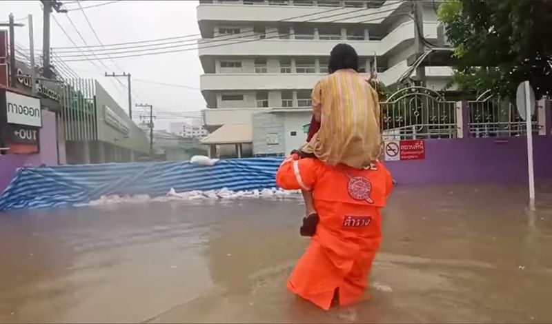 ด.ต.นาวิน ศรีไตรรัตน์ ผบ.หมู่ (จร.) สภ.เมืองชัยภูมิ เปิดเผยว่า ชาวบ้านเขาเดือดร้อนครับ เราต้องทำให้ดีที่สุด ช่วยเหลือคุณยาย ท่านได้รับอุบัติเหตุมา แต่ฝนตกหนักน้ำท่วมถนนที่จะไปโรงพยาบาล ผมตัดสินใจถอดเสื้อดามแขน และแบกคุณยายขึ้นคอ เดินลุยน้ำท่วมไปส่งโรงพยาบาล ด้วยความปลอดภัย คุณยายก็เปรียบเสมือนแม่ผมคนหนึ่งที่ต้องดูแล -007