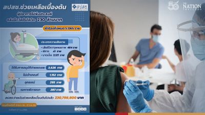 The National Health Security Office (NHSO) has delivered preliminary assistance of more than 230 million baht to 3,626 people who suffered adverse symptoms after the Covid-19 vaccination.
