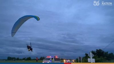The Northern Disaster Warning Associations paramotor team delivered food, drinks and other supplies by air to flood victims in Sukhothai Ban Kluay subdistrict on Monday.