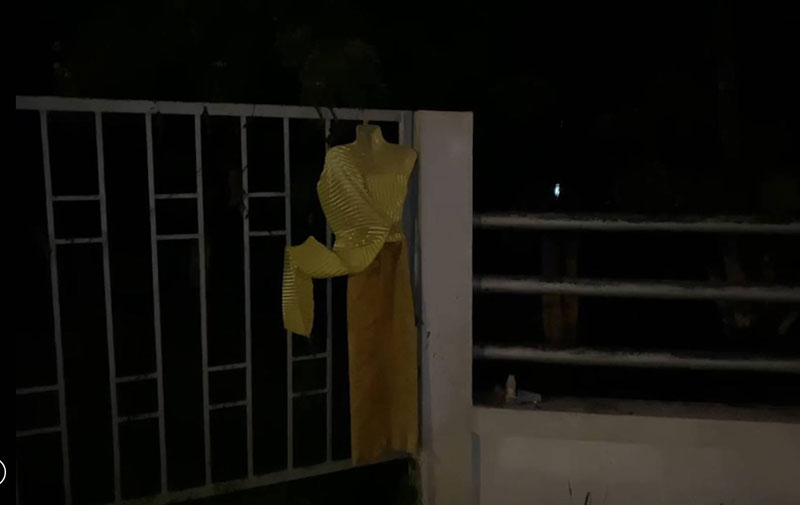 26 กันยายน 2564 ที่บริเวณประตูทางเข้า 2 สำนักชลประทานจังหวัดน่าน ถนนสายน่าน-บ้านหลวง ตำบลปางค่า อำเภอเมืองน่าน จังหวัดน่าน พบชุดไทยแขวนอยู่บริเวณรั้วประตูทางเข้า ตอนกลางวันดูๆแล้วก็ไม่รู้สึกแปลกอะไร แต่พอบรรยากาศตกดึกยามค่ำคืนก็ชวนขนหัวลุก เมื่อมีลมพัดแล้วผ้าสไบชุดไทยปลิว มองเผินๆชวนหลอน บ้างก็คิดว่าผีชุดไทยไม่มีหัวหลอก