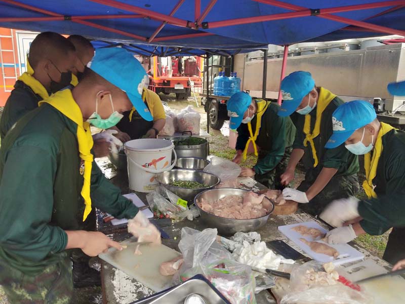 26 ก.ย.64 กำลังพลชุดบรรเทาสาธารณภัย พร้อมด้วยยุทโธปกรณ์ จากกองพันส่งกำลังและบริการที่ 23 กองบัญชาการช่วยรบที่ 3 ลงพื้นที่ช่วยเหลือประชาชนที่ประสบเหตุอุทกภัยน้ำท่วมฉับพลัน ด้วยการกรอกกระสอบทรายเพื่อนำไปทำแนวกั้นทางน้ำในพื้นที่บ้านนากลาง หมู่ที่ 7 ตำบลบางขลัง อำเภอสวรรคโลก จังหวัดสุโขทัย รวมทั้งนำกำลังพลประจำรถครัวสนาม พร้อมทหารจิตอาสาพระราชทาน ออกตั้งโรงครัวสนามประกอบอาหารปรุงสุก ร่วมกับ ศูนย์ป้องกันและบรรเทาสาธารณภัย เขต 9 พิษณุโลก เพื่อแจกจ่ายมอบอาหารปรุงสุกใหม่ให้กับประชาชนที่ประสบภัยน้ำท่วมฉับพลันในพื้นที่ตำบลบ้านซ่าน ณ วัดบ้านซ่าน ตำบลบ้านซ่าน อำเภอศรีสำโรง จังหวัดสุโขทัย ซึ่งได้จัดทำเป็นข้าวกล่องแจกจ่าย จำนวน 1,000 กล่อง รวมทั้ง กองพันซ่อมบำรุงที่ 23 กองบัญชาการช่วยรบที่ 3 จัดกำลังพลชุดบรรเทาสาธารณภัย และชุดปฏิบัติการกิจการพลเรือน ขุนอาสา338 พร้อมด้วยยุทโธปกรณ์ ร่วมกับ องค์การบริหารส่วนตำบลวังใหญ่,ผู้นำชุมชน ,มูลนิธิกู้ภัย และประชาชนในพื้นที่ ดำเนินการ กรอกกระสอบทราย ขนกระสอบทรายกั้นน้ำไม่ให้ไหลเข้าวัดเตว็ดใน หมู่ 4 ตำบลวังใหญ่ อำเภอศรีสำโรง จังหวัดสุโขทัย และ ติดตั้งเครื่องสูบน้ำ ไม่ให้น้ำท่วมพื้นที่สำคัญของวัดเตว็ดใน