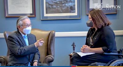 Foreign Minister Don Pramudwinai met with US Senator Tammy Duckworth on Tuesday to thank the Congresswoman for helping push the donation of one million more doses of Pfizer vaccine to Thailand, and to exchange views on important issues including cooperation on tackling climate change.