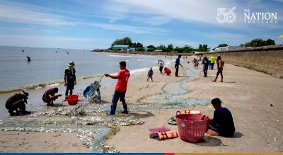 Phetchaburi locals were in for a rare sight as they visited Cha-am district on Monday to view aquatic animals which appeared on the beach and in shallow seawater as the creatures could not adapt to the sudden flow of freshwater from the upper part of the country.
