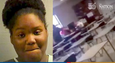 Jackson’s words appeared to be emphasized with hand movements that swiftly turned into closed-fist punches. The video showed the teacher falling to the floor as Jackson continued to pummel her near her face and head and as onlookers squawked in the background.