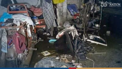 The fire was quickly brought under control and the mother has been invited to the district police station to testify. The father has been admitted to Rat Burana Hospital for treatment and his testimony will be taken later. Police, meanwhile, have launched a manhunt for the missing son.