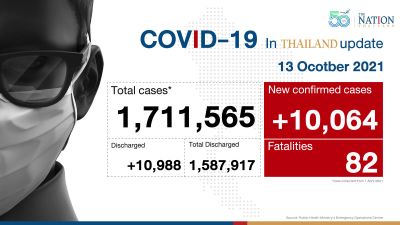 Ministry of Public Health reported on Wednesday (October 13) morning that in the past 24 hours there are 10,064 new patients who tested positive for Covid-19, 118 of whom have been found in prisons.