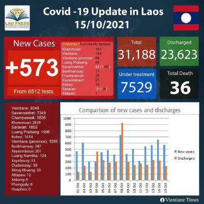Of the new cases, 571 were locally transmitted and 2 were reported among people entering Laos.