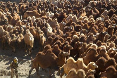 There are two types of camel pasture: summer and winter. As pasture grasses die off in autumn, the camels have to be transferred to their winter pasture.