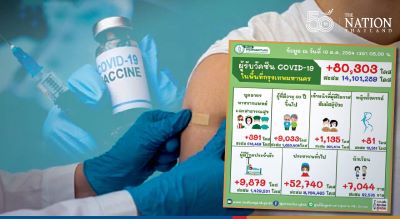Based on the latest civil registration records, Bangkok has 7,699,174 residents above the age of 18, and with 5,437,553 people double-jabbed, it has surpassed its target by 48,132.