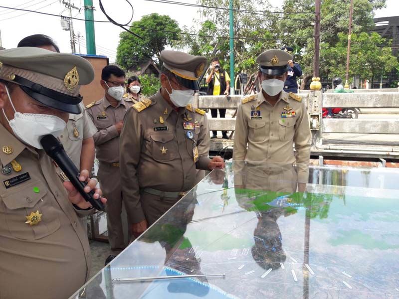 ในตอนบ่าย องคมนตรี พร้อมคณะ เดินทางไปยังโครงการบรรเทาอุทกภัยพื้นที่ลุ่มน้ำเพชรบุรีตอนล่างอันเนื่องมาจากพระราชดำริ ซึ่งเป็นหนึ่งในโครงการพระราชดำริที่พระบาทสมเด็จพระเจ้าอยู่หัว ทรงมีพระราชปณิธานที่จะสืบสาน รักษาและต่อยอด พระราชกรณียกิจของพระบาทสมเด็จพระบรมชนกาธิเบศรมหาภูมิพลอดุลยเดชมหาราช บรมนาถบพิตร เพื่อให้ประชาชนได้รับประโยชน์สูงสุด อันจะเป็นการพัฒนา คุณภาพชีวิตและความเป็นอยู่ของประชาชนให้ดีขึ้น บริเวณสะพานดำ อ.เมืองเพชรบุรี จ.เพชรบุรี เพื่อติดตามสถานการณ์น้ำและติดตามความก้าวหน้าของการดำเนินการ โดยมี นายสมเกียรติ แจ่มจันทร์ ผู้อำนวยการโครงการชลประทานเพชรบุรี รายงานความก้าวหน้าและผลการดำเนินงาน ปัจจุบัน กรมชลประทานได้มีการดำเนินการขยายคลองส่งน้ำ ฝั่งซ้ายและฝั่งขวาตลอดจนคลองซอย และคลองระบายน้ำ D9 เพื่อบริหารจัดการน้ำให้สามารถตัดยอดน้ำจากหน้าเขื่อนเพชร(ที่ตั้งอยู่ในพื้นที่อำเภอท่ายาง) ระบายลงทะเล โดยจะทำให้ปริมาณน้ำในลำน้ำแม่น้ำเพชรบุรีไม่เกินความจุ ซึ่งจะช่วยบรรเทาปัญหาอุทกภัยของตัวเมืองเพชรบุรีและประชาชนที่ตั้งบ้านเรือนอาศัยอยู่ริมน้ำได้ดีขึ้น นอกจากนี้ ได้ดำเนินการติดตั้งเครื่องสูบ จำนวน 27 เครื่อง โดยกระจายไปยังพื้นที่ต่างๆ ที่เสี่ยงน้ำท่วม อาทิ บริเวณพื้นที่ลุ่มต่ำริมตลิ่งแม่น้ำเพชรบุรี