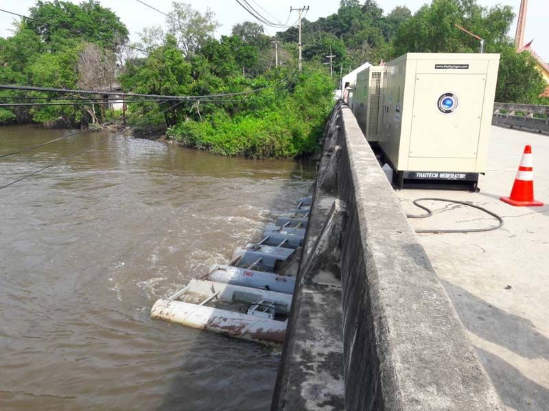 ต่อจากนั้น องคมนตรี และคณะ เดินทางไปเดินทางไปยังบริเวณสะพานวัดเขาตะเครา อำเภอบ้านแหลม เพื่อตรวจเยี่ยมและติดตามความพร้อมการติดตั้งเครื่องผลักดันน้ำที่บริเวณสะพานวัดเขาตะเครา จำนวน 8 เครื่อง บริเวณบ้านทุ่งเฟื้อ จำนวน 2 เครื่อง และบริเวณคันกั้นน้ำเค็มคลองต้นมะพร้าว จำนวน 2 เครื่อง รวมทั้งสิ้น 12 เครื่อง เพื่อช่วยเร่งผลักดันมวลน้ำให้ระบายไหลออกทะเลได้เร็วขึ้น ทำให้มวลน้ำไม่ชะลอตัว ส่งผลดีต่อการระบายน้ำของลำน้ำเพชรบุรีและช่วยบรรเทาการเกิดอุทกภัยในพื้นที่เศรษฐกิจของตัวเมืองเพชรบุรีได้เป็นอย่างดี ราษฎรชาวจังหวัดเพชรบุรี ต่างปลื้มปีติและสำนึกในพระมหากรุณาธิคุณเป็นล้นพ้น