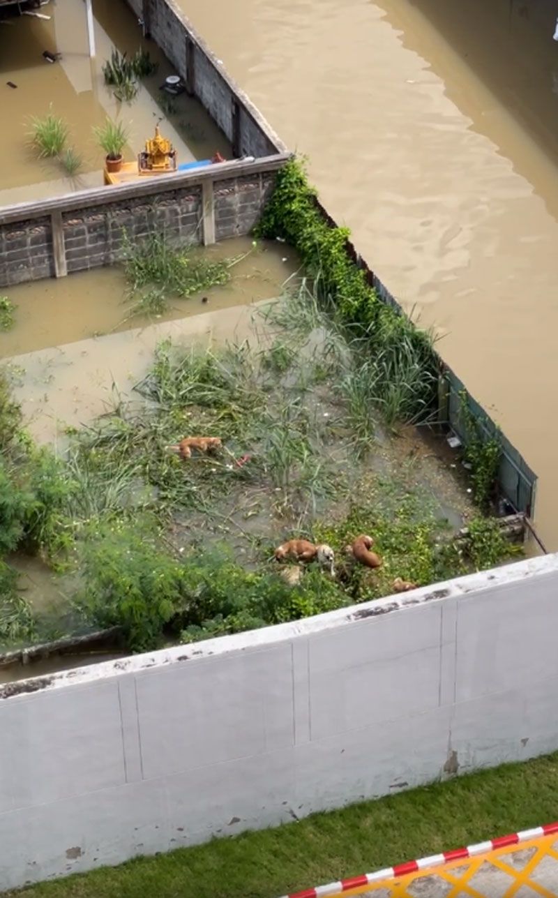 โถ่น่าสงสาร! แก๊งเจ้าตูบไปไม่เป็น ติดเกาะ กลางน้ำท่วมในโคราช พิกัด ซอยข้างศูนย์การค้าเทอร์มินอล 21 โคราช