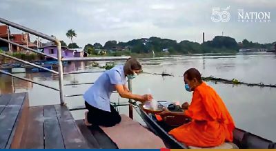 As well as in Uthai Thani where not many Buddhists came out to participate on this holy day and all the traditional activities have been suspended due to the pandemic, coupled with floods in some areas.