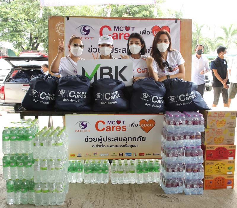 จากสถานการณ์อุทกภัยในขณะนี้ส่งผลให้เกิดน้ำท่วมฉับพลันและส่งผลกระทบต่อการดำเนินชีวิตของประชาชนในหลายพื้นที่ บริษัท เอ็ม บี เค จำกัด (มหาชน) ได้เล็งเห็นและตระหนักถึงความเดือดร้อน และได้ร่วมเป็นส่วนหนึ่งในการส่งต่อกำลังใจ และความห่วงใยอย่างต่อเนื่อง โดยผนึกพันธมิตร บริษัท อสมท จำกัด (มหาชน) สนับสนุนน้ำดื่ม MBK ผ่านโครงการ “Mcot Cares เพื่อชุมชน” เพื่อนำไปช่วยเหลือผู้ประสบอุทกภัย ตำบลท่าเรือ จังหวัดพระนครศรีอยุธยา
