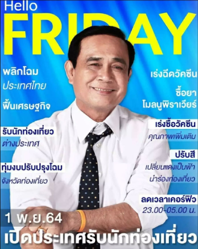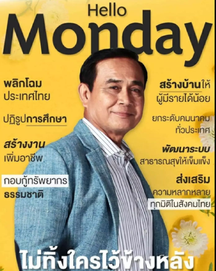 22 ต.ค.64 บนโลกโซเชียล โดยเฉพาะกลุ่มแฟนคลับ และ FC ของ “พล.อ.ประยุทธ์ จันทร์โอชา” นายกรัฐมนตรี และรมว.กลาโหม มีการแห่แชร์ภาพชุด ที่เป็นคอลเลกชั่นใหม่ของ พล.อ.ประยุทธ์ โดยเป็นภาพที่นำเอานายกฯ ในหลากหลายอิริยาบถ ทั้งในชุดทำงาน ชุดลำลอง ชุดกีฬา มาตัดต่อเข้ากับสีครบทั้ง 7 วัน พร้อมเขียนข้อความ ที่เป็นคำคมจากปากของนายกรัฐมนตรี