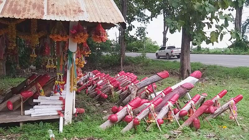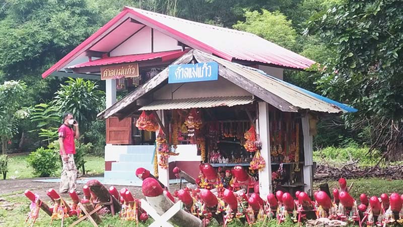 เกิดความสงสัยอย่างมาก สำหรับคนต่างถิ่นที่ขับรถแล่นผ่าน ‘ศาลแม่แก้ว’ ที่ตั้งอยู่ริมถนนสายหลัก ศรีสัชนาลัย-อุตรดิตถ์ ต.ดงคู่ อ.ศรีสัชนาลัย จ.สุโขทัย แล้วจะเห็นมีปลัดขิก ทั้งอันเล็กอันใหญ่ ทาสีแดง ตั้งวางไว้ตรงหน้าศาลจำนวนมาก ต่างก็พากันคิดสงสัย และอยากรู้ว่ามีความเป็นมาอย่างไร