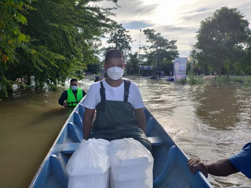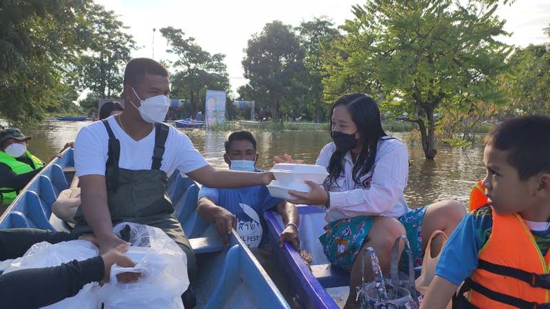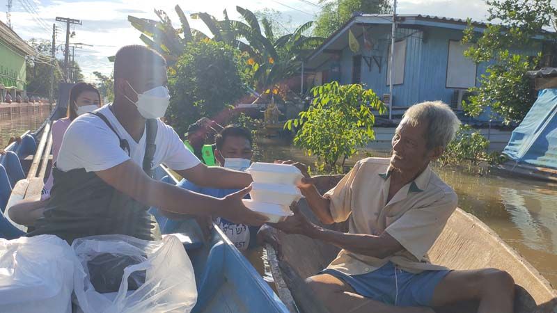 นายพัฒน์ธนชัย กล่าวว่า ทางสมาคมประชาคมคนตาบอดไทย ได้รับทราบถึงปัญหาสถานการณ์อุทกภัยทั้งในส่วนของผู้พิการตาบอด และพี่น้องประชาชนทั่วไปที่ได้รับความเดือดร้อนจากน้ำท่วมในครั้งนี้ ทางสมาคมฯ จึงได้จัดตั้งโรงครัวเพื่อช่วยบรรเทาทุกข์และช่วยเหลือผู้ประสบอุทกภัยในจังหวัดสิงห์บุรี ทั้ง 3 อำเภอ คือ อ.อินทร์บุรี อ.พรหมบุรี และ อ.เมืองสิงห์บุรี จำนวน 800 กล่อง ทุกวันจนกว่าสถานการณ์จะคลี่คลาย ในส่วนของคนตาบอดที่ได้รับผลกระทบน้ำท่วมและผลกระทบในสถานการณ์โควิดนั้น ทางสมาคมฯ ได้จัดให้เพิ่มเติมคือ ถุงยังชีพ 1 ถุง และเงินสดอีกจำนวน 500 บาท จากนั้น นายพัฒน์ธนชัย นายกฯ ได้ลงเรือนำข้าวกล่องไปมอบให้กับผู้ประสบอุทกภัยถึงในบ้าน และได้มามอบให้กับชาวบ้านที่มารอรับข้าวบนฝั่ง สร้างความตื้นตันใจให้กับชาวบ้านที่มารับข้าวกล่องในครั้งนี้เป็นอย่างมาก. -008