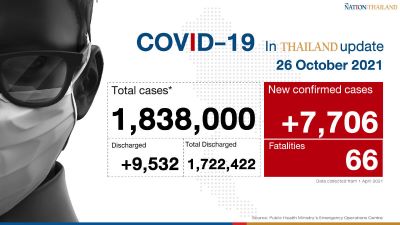 Ministry of Public Health reported on Tuesday (October 26) morning that in the past 24 hours there are 7,706 new patients who tested positive for Covid-19, 128 of whom have been found in prisons.