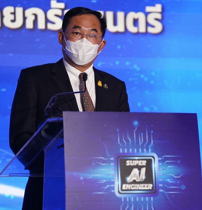 ทั้งนี้ ศ.(พิเศษ)ดร.เอนก ได้กล่าวปาฐกถาพิเศษ เรื่อง การพัฒนาบุคลากรและทรัพยากรด้านปัญญาประดิษฐ์เพื่อการพัฒนาประเทศไทย ว่า ในทุกปีประเทศไทยมีนโยบายเศรษฐกิจและแผนกลยุทธ์ของชาติที่เน้นการสร้างความเข้มแข็งจากของบุคลากร และองค์กรภายใน มีการเตรียมพร้อมที่จะขับเคลื่อนประเทศให้สามารถปรับเปลี่ยนโครงสร้างทางเศรษฐกิจของประเทศไทยสู่เศรษฐกิจดิจิทัล และเชื่อมระหว่างเศรษฐกิจภายในกับเศรษฐกิจโลก ถือได้ว่าเป็นการเพิ่มขีดความสามารถในการแข่งขันและเติบโตทางเศรษฐกิจโดยการใช้เครื่องมือดิจิทัลในการทำงาน ซึ่งความเข้มแข็งภายในนี้จะต้องสร้างขึ้นจากการยกระดับนวัตกรรม ปัญญาประดิษฐ์ หรือ AI ซึ่งถือเป็นศาสตร์ทางดิจิทัลที่สำคัญ ที่หลายๆ ประเทศที่พัฒนาแล้วต่างให้ความสำคัญและนำมาเป็นส่วนหนึ่งของยุทธศาสตร์ชาติ ประเทศไทยก็เช่นเดียวกัน ที่วันนี้ได้เกิดการรวมตัวกันของทุกภาคส่วนในการจัดตั้งสมาพันธ์ปัญญาประดิษฐ์ประเทศไทย หรือ AI Thailand Consortiumที่ประกอบไปด้วย 5 องค์กร ได้แก่ สำนักงานพัฒนารัฐบาลดิจิทัล (องค์การมหาชน) สพร.ในฐานะองค์กรภาครัฐศูนย์เทคโนโลยีอิเล็กทรอนิกส์และคอมพิวเตอร์แห่งชาติ (เนคเทค) ในฐานะองค์กรภาคการวิจัย สมาคมสภาคณบดีคณะเทคโนโลยีสารสนเทศ ประเทศไทย(CITT) ในฐานะองค์กรภาคการศึกษา สมาคมผู้ประกอบการปัญญาประดิษฐ์ประเทศไทย (AIEAT) ในฐานะองค์กรภาคเอกชน และสมาคมปัญญาประดิษฐ์ประเทศไทย (AIAT) ในฐานะองค์กรภาคประชาสังคม เพื่อสร้างและบริหารจัดการทรัพยากรด้านปัญญาประดิษฐ์ร่วมกัน โดยมุ่งเน้นการจัดทำแพลตฟอร์มปัญญาประดิษฐ์กลางของประเทศไทย (AI Thailand Platform) การสร้างทรัพยากรให้กับประเทศเพื่อใช้งานทั้งในภาครัฐและภาคเอกชน ซึ่งจะนำไปสู่การกระตุ้นให้เกิดการสร้างอุตสาหกรรมปัญญาประดิษฐ์ในประเทศไทยในอนาคต