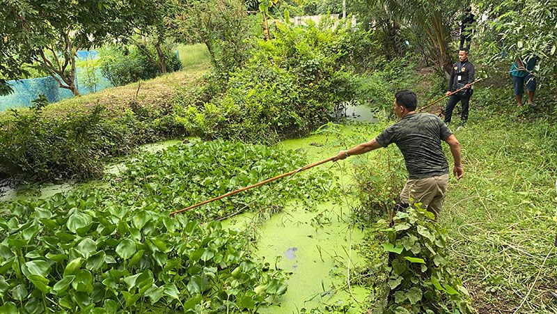 ทางด้านนายสมพล สุระสัจจะ ปลัดอำเภอหัวหน้าฝ่ายความมั่นคงอำเภอบางใหญ่ กล่าวว่า ได้รับแจ้งจากชาวบ้านว่า พบจระเข้ความยาวประมาณ 2 เมตรกว่าๆ นอนอยู่ภายในสวน จึงนำกำลังเข้าตรวจสอบ พบจระเข้ลอยคออยู่ในคลองดังกล่าว แต่ไม่สามารถจับได้ ตอนนี้ได้จัดกำลังเฝ้าดูอยู่ พร้อมประสานหน่วยงานที่เชี่ยวชาญที่มีความพร้อมในด้านอุปกรณ์เครื่องมือ