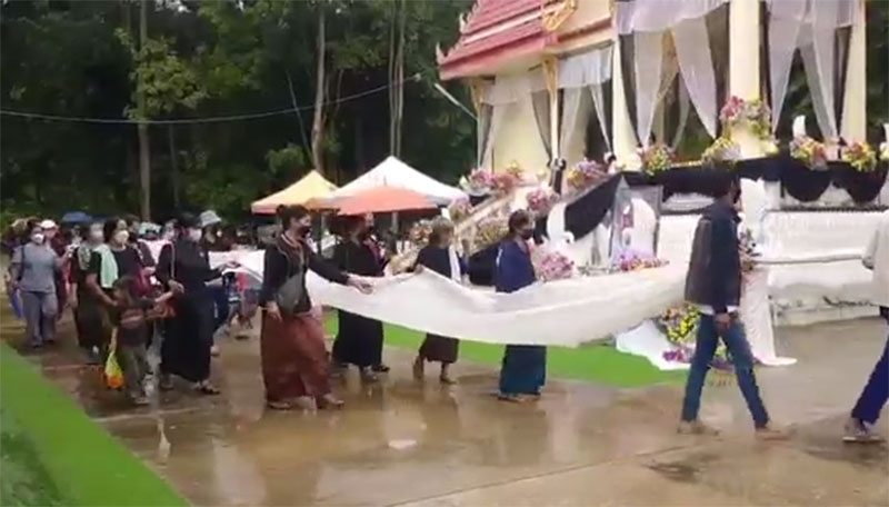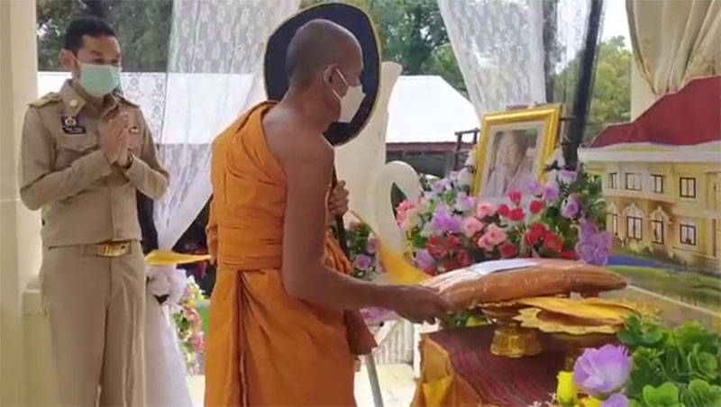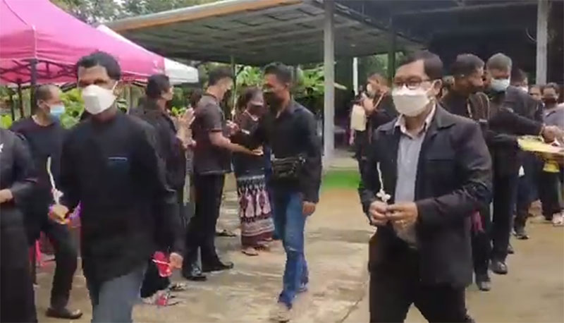 โดยมีเจ้าหน้าที่ อ.ส.ม. และผู้นำหมู่บ้าน ร่วมตรวจคัดกรองตรวจวัดอุณหภูมิ มีการจัดเว้นระยะห่างเพื่อความปลอดภัย มีการให้บริการเจลแอลกอฮอล์ ให้กับผู้ที่มาร่วมแสดงความอาลัย อย่างเข้มงวดและปลอดภัย โดยมีนายพีรวัฒน์ ธีระวัฒนา นายอำเภอศรีณรงค์ พร้อมด้วยผู้นำหมู่บ้านและชาวบ้านร่วมแสดงความอาลัยของการจากไปของคุณยายทอง เกื้อหนุนอีกด้วยถือว่าคุณยายทอง เกื้อหนุน เป็นบุคคลต้นแบบที่ใช้ชีวิตแบบเรียบง่ายและรักษาสุขภาพได้ดี และคนรุ่นหลังควรเอาเป็นแบบอย่าง. 012