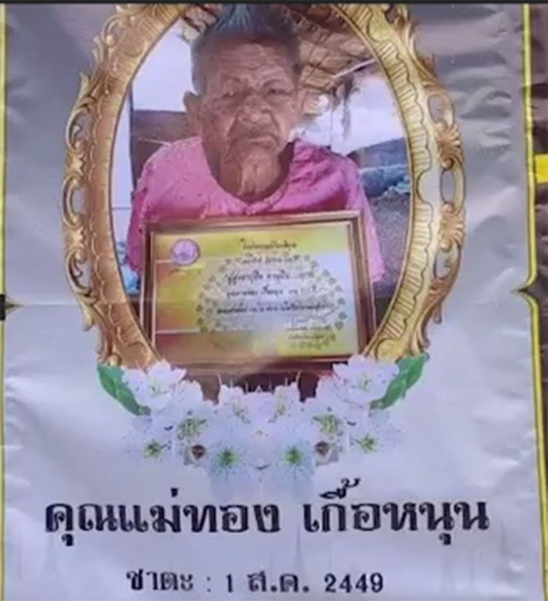 คุณยายท่านนี้ชื่อคุณยายทอง เกื้อหนุน ท่านเกิดตั้งแต่สมัยรัชกาลที่ 5 จนถึงสมัยรัชกาลที่ 10 ซึ้งเป็นคุณยายที่แข็งแรงและอายุยืนที่สุดในจังหวัดสุรินทร์ โดยคุณยายใช้ชีวิตแบบเรียบง่ายและพอเพียง อาหารการกินที่คุณยายกิน มีสูตรเด็ดเคล็ดลับจนทำให้ร่างกายแข็งแรงไม่ป่วยและอายุยืน