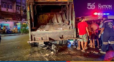 A garbage collector on the truck named Thanomchai Naksuk, 44, told police that Anupong sped past the red light before crashing at high speed into the rear of the truck.